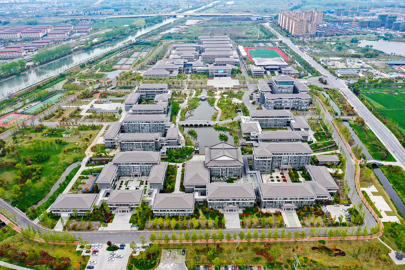 江蘇旅游職業學院一期項目建筑面積202835m2,地上建筑面積185418m2,框架結構,地下1層,地上2/3/4/5/6/8層,公共建筑(文教建筑),建筑最高高度39.85m。開竣工時間為2016.12.15~2017.12.26,總造價9.37億元。項目首創性地提出了開放式校園,以5A級景區標準建設山水園林式校園,“園中園”布局方式,打造一個園林盛景。以書局格式、開放辦學、園林校區、綠色學院四大規劃理念引領,打造出一軸,兩片,一帶的空間格局;景觀設計圍繞“春夏秋冬”、“梅蘭竹菊”、“北斗七星”三大主題。通過滲、滯、蓄、凈、用、排等綜合技術打造海綿示范校區。