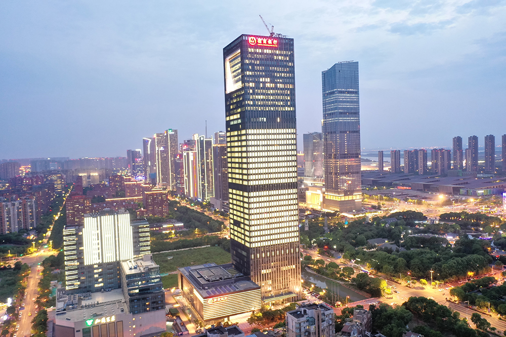 招商銀行南京分行招銀大廈工程,總建筑面積133566.7平方米,由一棟超高層塔樓及裙房組成,地下3層,地上45層,最大高度216.8米,地下為車庫、設備用房,地上為辦公樓,是一棟集辦公、商業為一體的綜合性寫字樓,基礎采用樁筏基礎,塔樓為框架-核心筒結構。200米高空觀景平臺打造“招行之窗”,立意“財富之門”,成就城市亮點。
