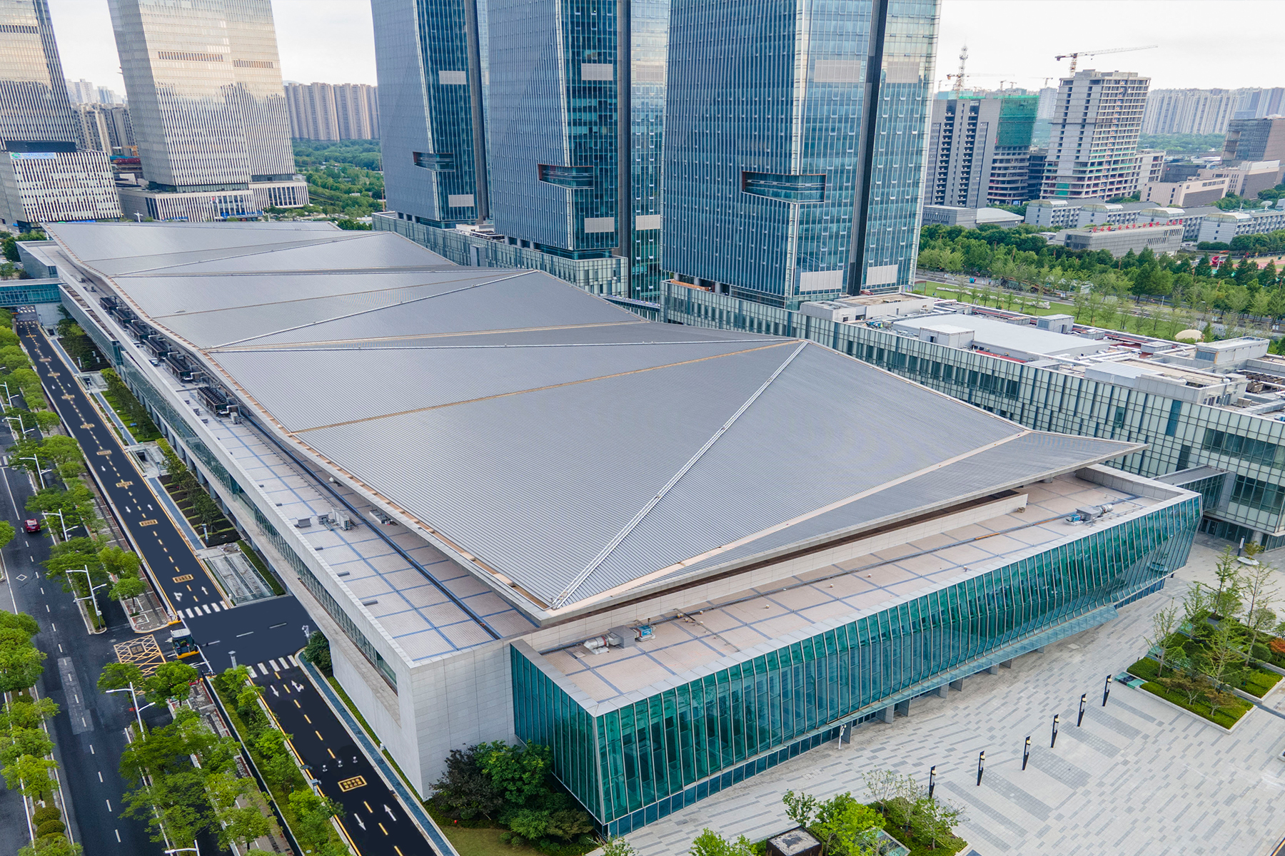南京國際博覽中心三期坐落于六朝古都南京河西新城中心位置,青奧中軸線以東。項目作為南京國際博覽中心總體項目中最后的一環,融匯世界最新會展理念和南京地域特色,建筑外觀雄偉大氣而富有張力,形成“虎踞龍盤”的獨特建筑風格。