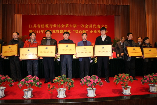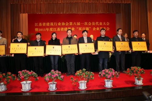 2011年度江蘇省建筑業“競爭力”百強企業代表上臺領獎