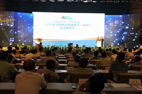 會(huì)上,江蘇省住房城鄉(xiāng)建設(shè)廳廳長(zhǎng)周嵐、副廳長(zhǎng)徐學(xué)軍與海南、廣東、福建三省住房城鄉(xiāng)建設(shè)部門(mén)分別簽訂了加強(qiáng)建設(shè)領(lǐng)域戰(zhàn)略合作的框架協(xié)議;10個(gè)推介企業(yè)代表登臺(tái)發(fā)言,與會(huì)全體企業(yè)負(fù)責(zé)人集體上臺(tái)亮相,并與領(lǐng)導(dǎo)合影留念。
