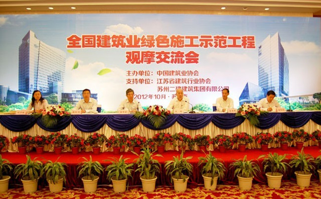 10月11-12日,中國建筑業(yè)協(xié)會在蘇州舉辦了全國建筑業(yè)綠色施工示范工程觀摩交流會,并發(fā)布了《全國建筑業(yè)綠色施工示范工程申報與驗收指南》。中國建筑業(yè)協(xié)會副會長兼秘書長吳濤、江蘇省建筑行業(yè)協(xié)會會長高學(xué)斌出席會議并講話。會議由中建協(xié)副秘書長劉宇林主持。