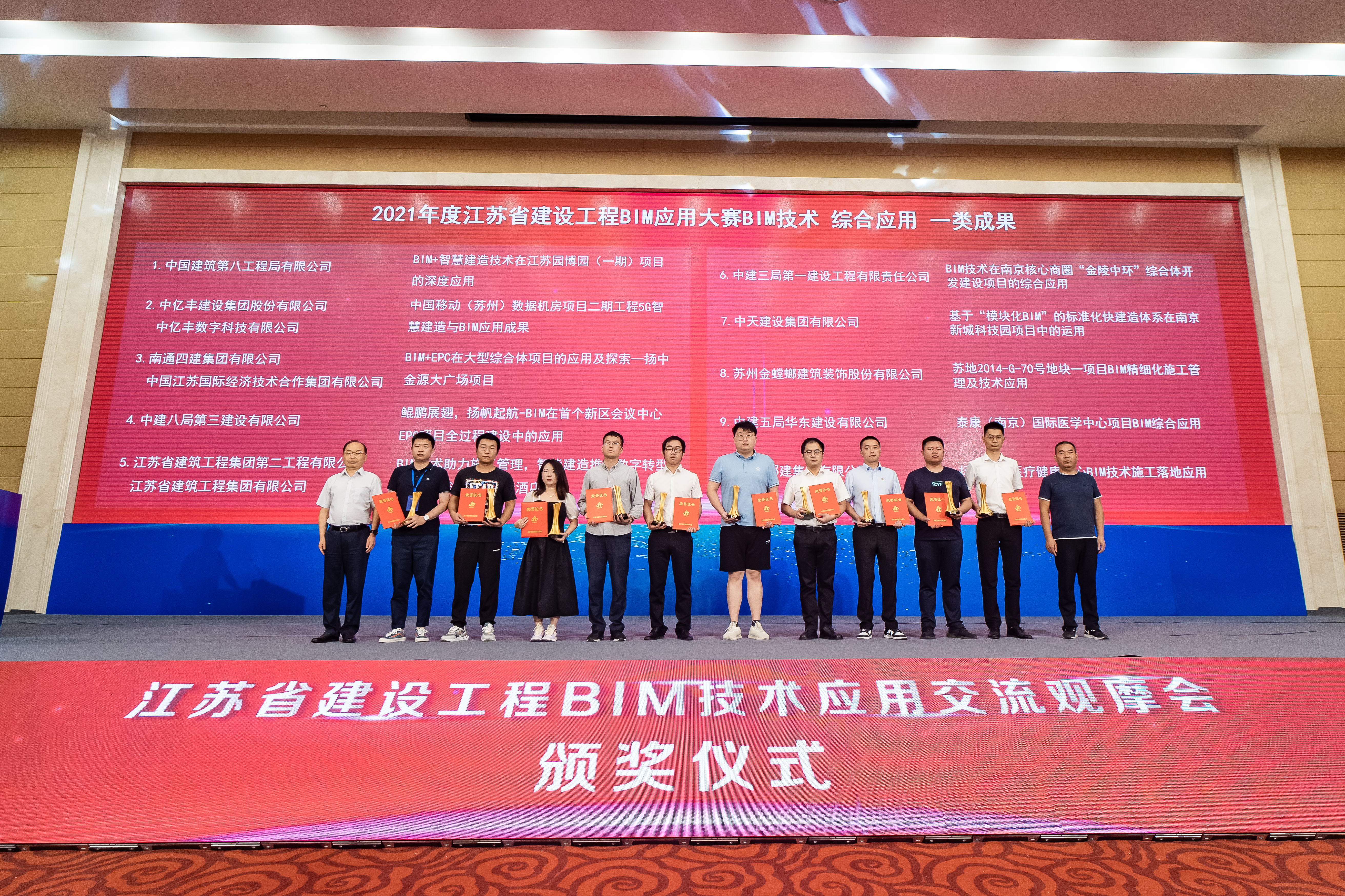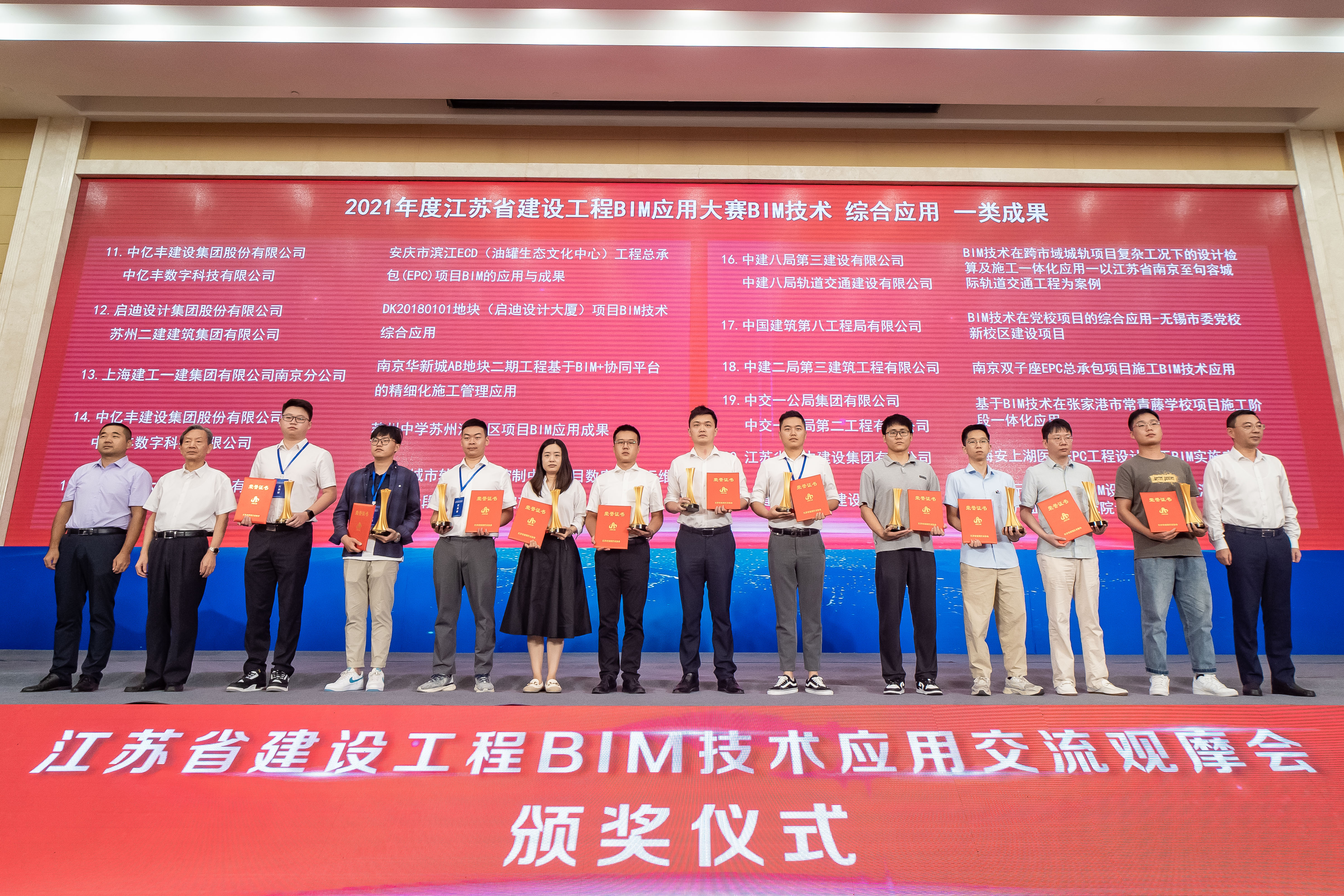 會上,江蘇省建筑行業協會監事任仲宣讀了《關于公布江蘇省建設工程 BIM 應用大賽競賽結果的通知》,與會領導和嘉賓為獲得江蘇省建設工程BIM技術大賽(2021年度)一類成果單位代表頒發了獎杯和證書。