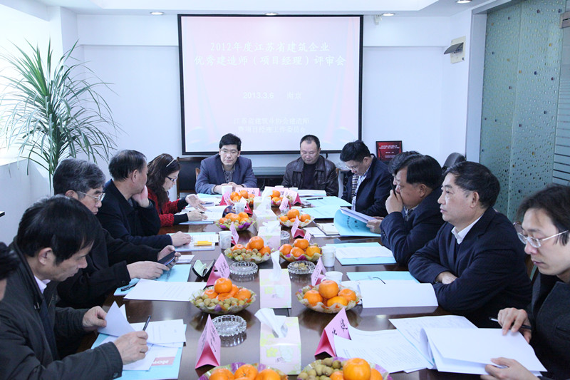 2013年3月6日,2012年度江蘇省建筑業企業優秀建造師(項目經理)評審會在南京召開。江蘇省建筑行業協會會長高學斌、省建協建造師暨項目經理工作委員會會長鄒金林、江蘇省住房和城鄉建設廳直屬機關黨委副書記丁舜祥、廳建筑市場監管處副處長劉紅霞、江蘇省建筑行業協會常務副秘書長劉國平等17名評審委員出席會議。會議由鄒金林會長主持。