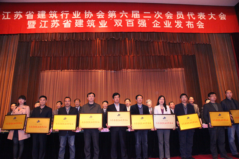 4月9日,江蘇省建筑行業(yè)協(xié)會(huì)第六屆二次會(huì)員代表大會(huì)暨2012年度江蘇省建筑業(yè)“雙百強(qiáng)”企業(yè)發(fā)布會(huì)在南京召開。