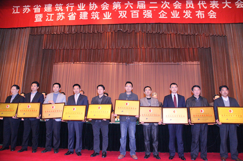 2012年度江蘇省建筑業(yè)“競(jìng)爭(zhēng)力百強(qiáng)企業(yè)”代表上臺(tái)領(lǐng)獎(jiǎng)