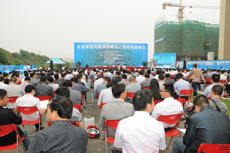 5月31日,全省保障房建設創精品工程現場觀摩會在南京召開。省住房和城鄉建設廳徐學軍副廳長、省建筑行業協會高學斌會長出席會議并講話。這次會議由省住房和城鄉建設廳主辦、省建筑行業協會承辦,南京安居保障房建設發展有限公司、南京萬暉置業有限公司、中國建筑第二工程局有限公司、南京市建筑業協會協辦。參加會議的有各省轄市建設局(委)、蘇州工業園區規劃建設局、張家港保稅區規劃建設局和昆山市、泰興市、沭陽縣建設局分管領導、主管工程質量的處(科)長和主管保障房建設的處(科)長、質監站站長;各省轄市建筑行業協會領導和業務部門負責人;各省轄市、縣(市、區) 部分在建保障房項目建設、施工、監理單位負責人,共560多人。