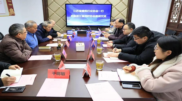 為回應會員訴求、破解消防技術服務行業惡性低價競爭難題,近日,江蘇省建筑行業協會智慧城市與消防行業分會副會長兼秘書長陳曉、南京市建設工程消防審驗服務中心副主任王飛羽、副科長杜然一行赴浙江省消防協會調研工程消防技術服務工作。浙江省消防協會會長洪巨平、副會長兼秘書長王文銳、副會長兼消防技術服務分會會長陶李華等參加調研交流會。