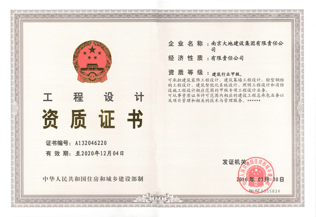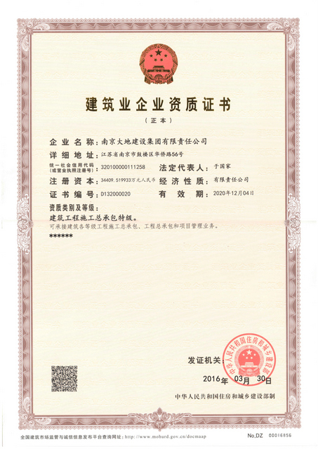 日前,住房和城鄉建設部發布公告,南京大地建設集團有限責任公司晉升建筑工程施工總承包特級資質,并同時獲得建筑行業甲級設計資質(兼具建筑工程專業甲級和人防工程專業甲級),成為南京市第1家和我省第41家同獲此兩項行業最高資質的企業。