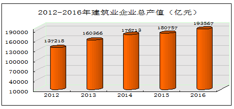 (一)充分發揮國民經濟支柱產業作用。從不變價增速來看,2013-2016年,建筑業增加值年均增長8.0%,高于同期國內生產總值年均增速0.8個百分點;從現價總量看,2016年,建筑業增加值達49522億元,比2012年增加1.3萬億元,是其1.35倍;從占GDP的比重看,2013-2016年,建筑業增加值占當年國內生產總值的比重均保持在6.7%以上。建筑業以健康平穩的發展,以及對大量關聯產業的有效帶動,有力地支撐了國民經濟中高速增長。