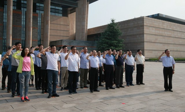 全體黨員在南湖革命紀念館宣誓墻前重溫入黨誓詞