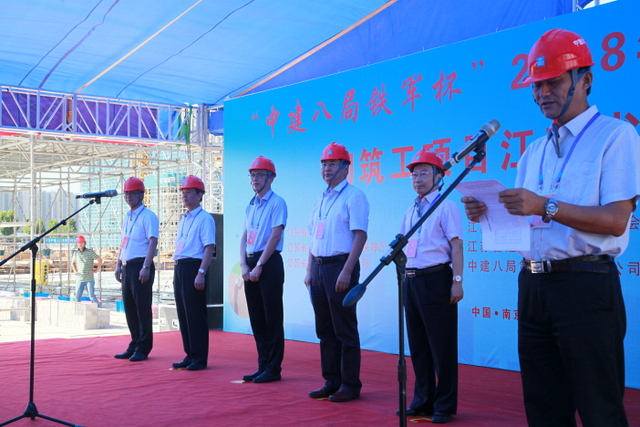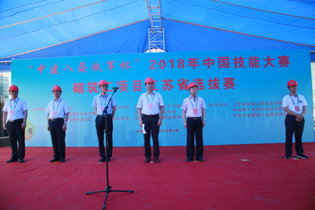 7月12至13日,“中建八局鐵軍杯”2018年中國技能大賽砌筑工項目江蘇省選拔賽在南京國際博覽中心三期項目工地圓滿舉辦。來自南京、無錫、常州、蘇州、南通、鹽城、揚州、鎮江、泰州、宿遷等10個設區市和省部屬企業的31名選手參加了本次大賽。省住建廳副巡視員、機關黨委書記楊洪海,省建筑行業協會會長張寧寧,省住建廳人教處處長章小剛,省建設工會工作委員會主任韓益華,中建八局三公司黨委副書記、工會主席馬清杰,以及來自各設區市代表隊領隊、選手、裁判員、工作人員和新聞媒體等200余人參加了開幕式。