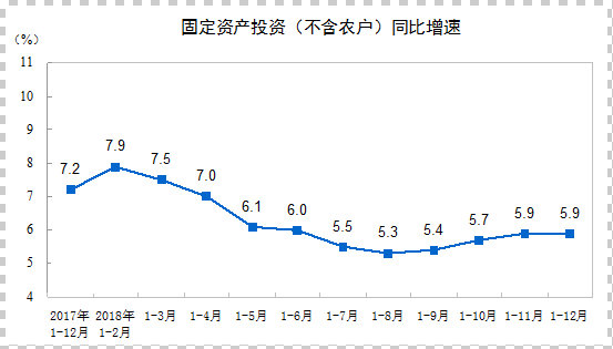 2018年全國(guó)固定資產(chǎn)投資(不含農(nóng)戶)635636億元,比上年增長(zhǎng)5.9%,增速比前三季度加快0.5個(gè)百分點(diǎn)。其中,民間投資394051億元,增長(zhǎng)8.7%,比上年加快2.7個(gè)百分點(diǎn)。分產(chǎn)業(yè)看,第一產(chǎn)業(yè)投資增長(zhǎng)12.9%,比上年加快1.1個(gè)百分點(diǎn);第二產(chǎn)業(yè)投資增長(zhǎng)6.2%,加快3.0個(gè)百分點(diǎn),其中制造業(yè)投資增長(zhǎng)9.5%,加快4.7個(gè)百分點(diǎn);第三產(chǎn)業(yè)投資增長(zhǎng)5.5%,其中基礎(chǔ)設(shè)施投資增長(zhǎng)3.8%。
