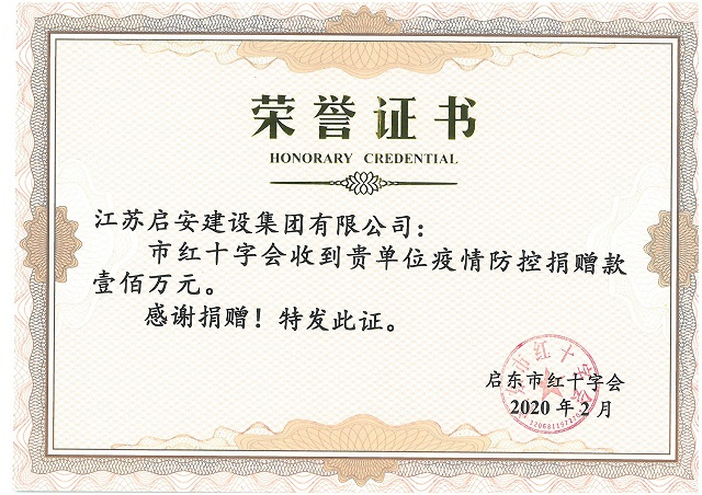 2月4日,為助力家鄉打勝疫情防控阻擊戰,支持全國防疫工作,集團公司黨委、董事會決定向啟東市紅十字會捐資人民幣100萬元,并號召集團公司各分公司、所有共產黨員、廣大員工,主動擔當社會責任,響應黨和政府號召,嚴格遵守各級政府有關疫情防控通告要求,無條件認真做好分公司、項目部所在地疫情防控工作。