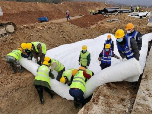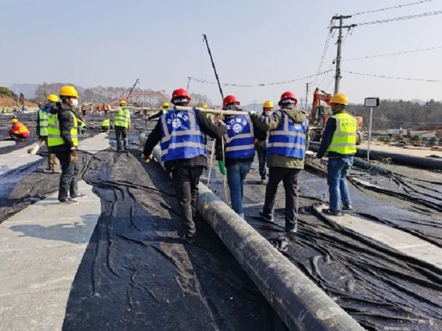 在有限的12天工期內,參建突擊隊不懼風險,不怕疲勞,英勇奮戰,頑強拼搏,“兩班倒”二十四小時晝夜不停施工,爭分奪秒搶抓進度,全力投入到工程建設中,往往上一組剛完成場地鋪沙,下一組馬上進場鋪設防滲膜。在工程實施過程中遇到的諸多難題,大家一起邊溝通、邊施工、邊調整,直面困難,逐個擊破,全力確保疫情重點應急工程按期交付,用奉獻和付出書寫初心使命,用責任與擔當守衛南京平安。