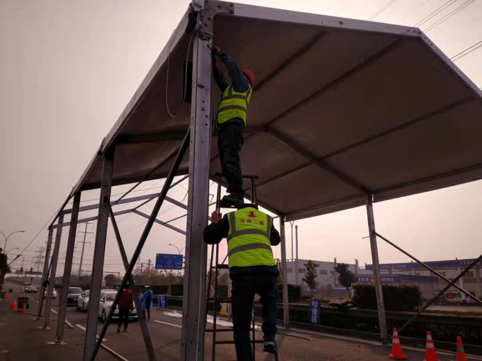 武漢新冠肺炎疫情發(fā)生后,無錫市委市政府根據(jù)江蘇省委省政府抗疫部署要求,結(jié)合無錫本地實際,立即啟動了疫情一級響應防控措施。無錫市住建局即刻落實市抗疫指揮部的部署指示,大年初一開始謀劃,在無錫市高速公路、國省干道各個道口點,搭建臨時留驗站簡易用房和相關(guān)設施,為公安、衛(wèi)生檢疫人員提供完備的工作生活后勤保障,為防止疫情擴散與輸入性疫病入市發(fā)揮了阻斷助力作用,為無錫市全面阻止疫情于道口域外搶得先機,作出了先頭貢獻。