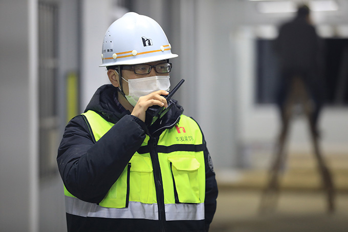 這段時間里大家對新型冠狀病毒肺炎都唯恐避之不及,當初得知兒子要去三院,蔣昭退休在家的父親面露擔心,但作為曾經的一名華發人,他鼓勵道:“這是一項光榮的任務,你必須拿出華發人應有的擔當,堅決完成好這項工作!”蔣昭的妻子沒有說什么,她立即出門,跑了好多家藥店,將買到的僅有的一瓶酒精和一小包口罩交到丈夫手中。2月12日是蔣昭女兒的生日,前一天晚上女兒再三叮囑爸爸早點回來。12日當晚,施工現場加班加點安裝集成衛生間,不同于往常的成品集成衛生間,此次的集成衛生間組裝全由現場的木工安裝,初次進行此項安裝工作,加上現場交叉作業較多,蔣昭必須現場統籌并協調,等下班回家已經錯過了孩子的生日。下班回家不代表工作的結束,蔣昭的工作電話也是不斷,還要在電腦前再細化工程細節。蔣昭為了不打擾家人,自己將書房當臥室,一大早靜悄悄去工地,晚上再靜靜回來。