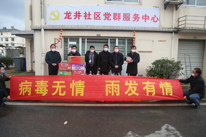 病毒無情,雨發有情。2月15日9時許,受集團總顧問指派,集團行政副總經理向士滿一行先后來到湯泉街道、龍井社區和大黃社區,向奮戰在防控疫情一線的湯泉街道及社區工作人員捐贈口罩、食品等急需物資,為疫情防控期間服務工作人員送去溫暖,解決防控疫情急需的實際物資。