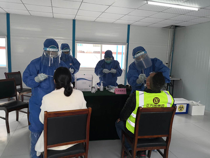 2月27日,無(wú)錫錫山區(qū)住建局、安監(jiān)站的多位領(lǐng)導(dǎo)來(lái)到了復(fù)工后的東蕾苑項(xiàng)目部,慰問(wèn)指導(dǎo)項(xiàng)目部疫情防控和復(fù)工復(fù)產(chǎn)工作,并免費(fèi)為施工人員開(kāi)展了核酸檢測(cè)。錫山區(qū)建設(shè)局建管處主任張明峰、安監(jiān)站主任許早洪詳細(xì)了解了項(xiàng)目部的復(fù)工復(fù)產(chǎn)進(jìn)展和疫情防控落實(shí)情況,并根據(jù)施工人員返崗情況制定了核酸檢測(cè)分批實(shí)施方案。隨后,錫山區(qū)衛(wèi)生健康部門的醫(yī)務(wù)人員為項(xiàng)目部第一批接受檢測(cè)的監(jiān)理、審計(jì)、管理人員、保安等46人取樣咽拭子進(jìn)行了核酸檢測(cè)。