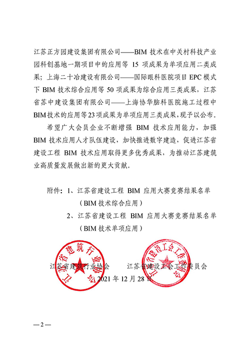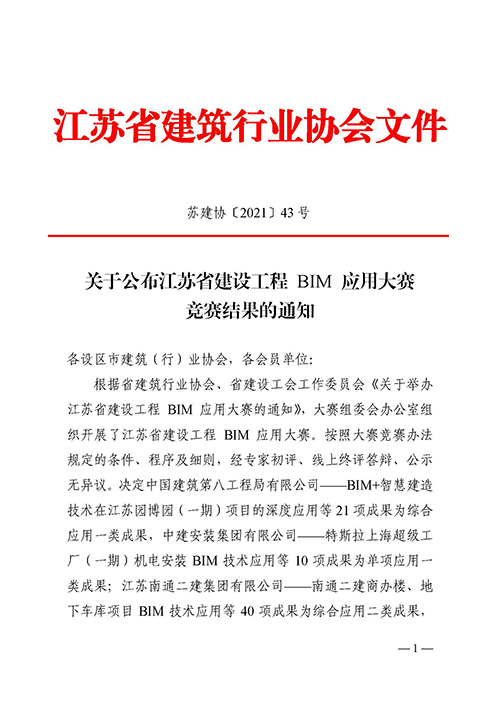 蘇建協[2021] 43號 關于江蘇省建設工程BIM應用大賽競賽結果名單的通知(2) -副本.pdf