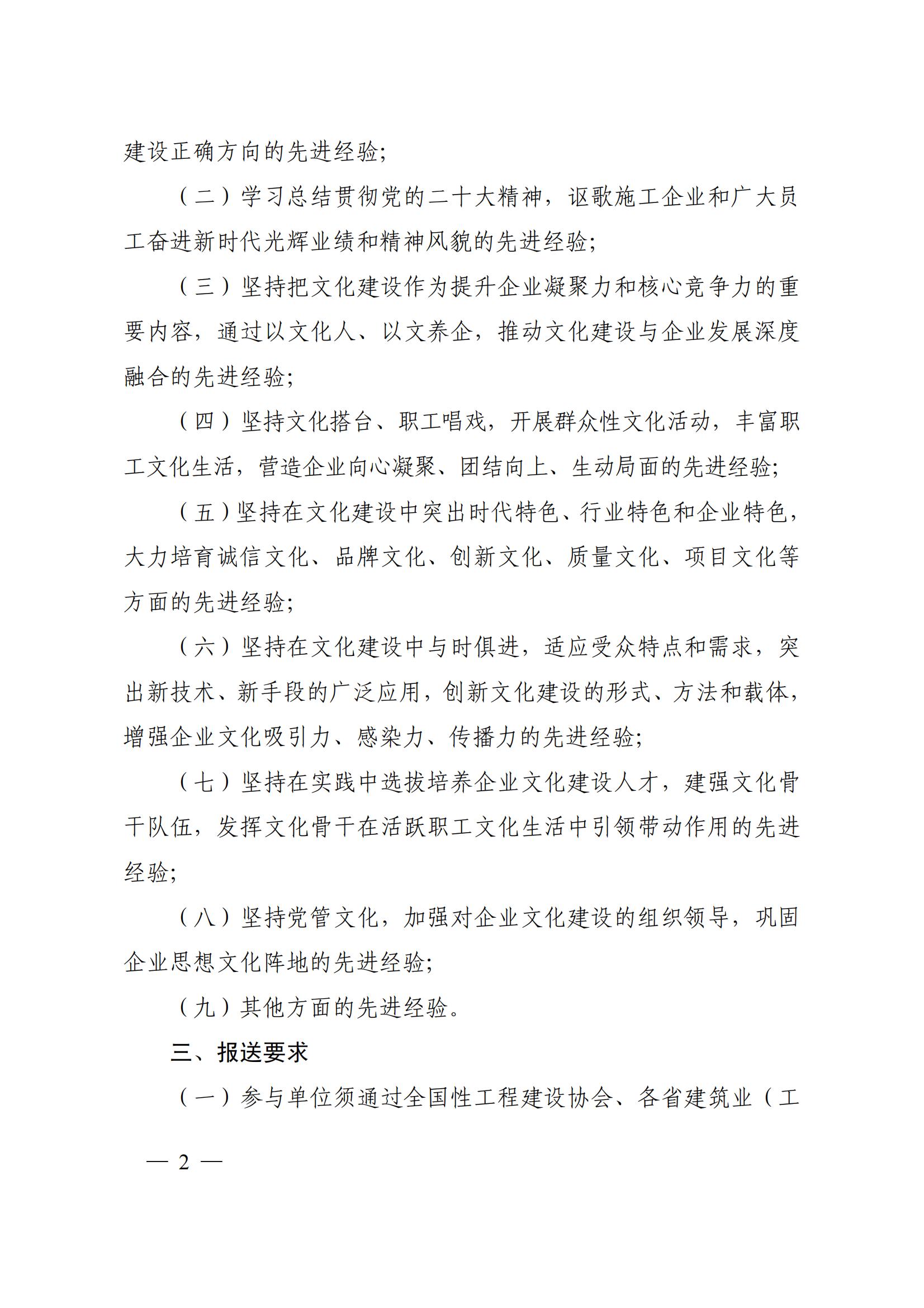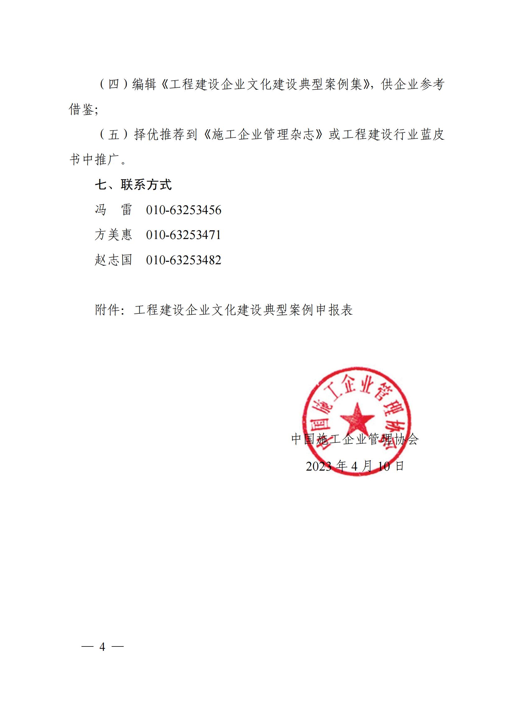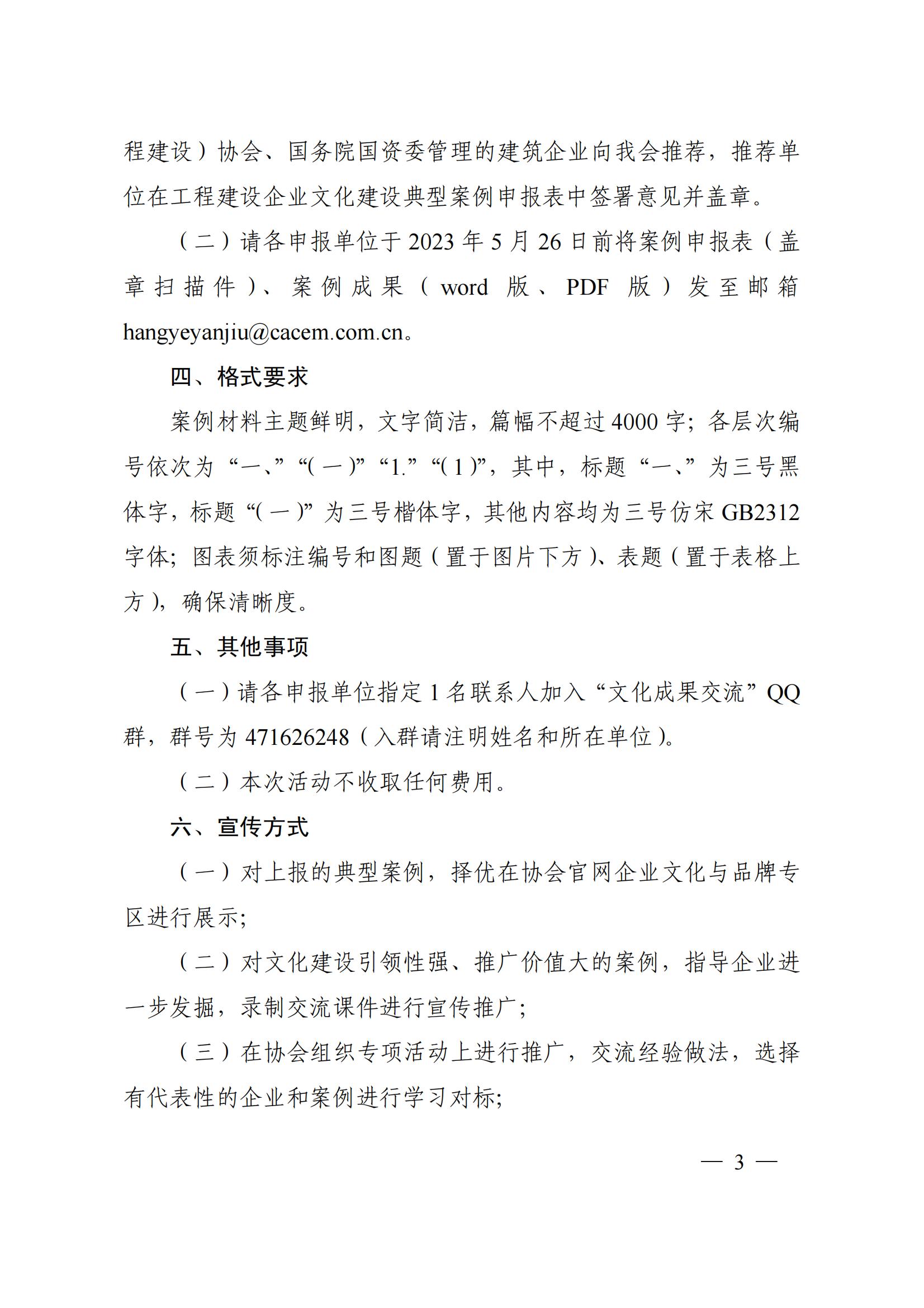 請參加中建協征集2023年工程建設企業文化建設典型案例的單位按照通知要求進行申報。申報企業請于5月22日前,將申報材料發送至yuxianjob123@163.com,我會將統一推薦。聯系人:蔡玉梅、于賢,聯系電話:025-83300879。