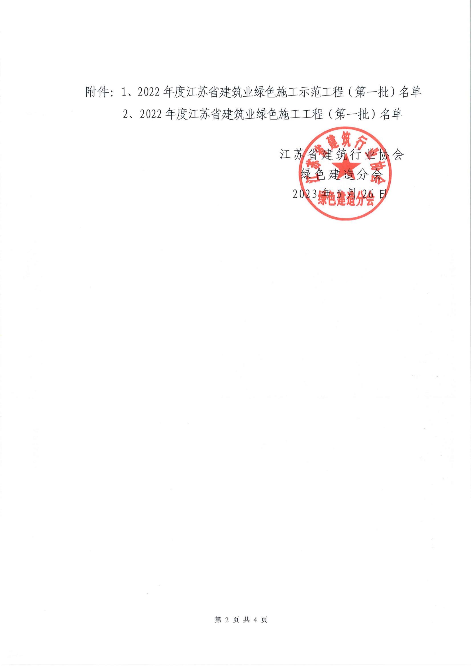 附件:1、2022年度江蘇省建筑業綠色施工示范工程(第一批)名單