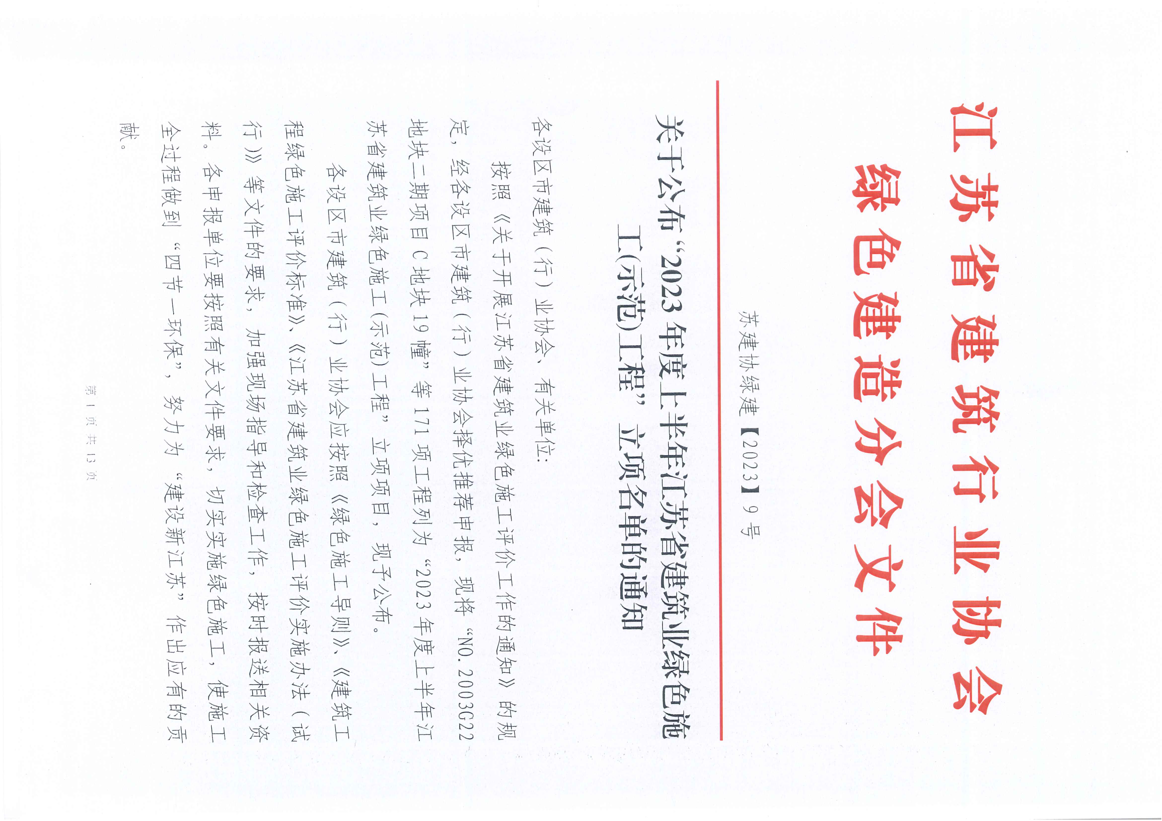 附件:2023年度上半年江蘇省綠色施工示范工程立項名單