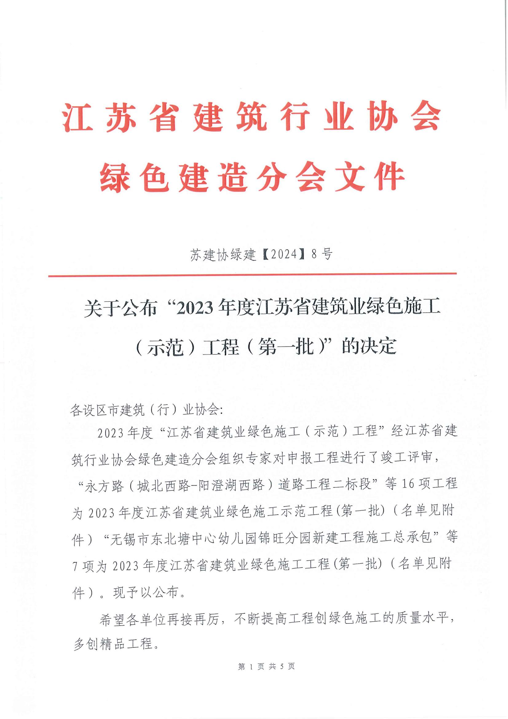 2、2023年度江蘇省建筑業綠色施工工程(第一批)名單