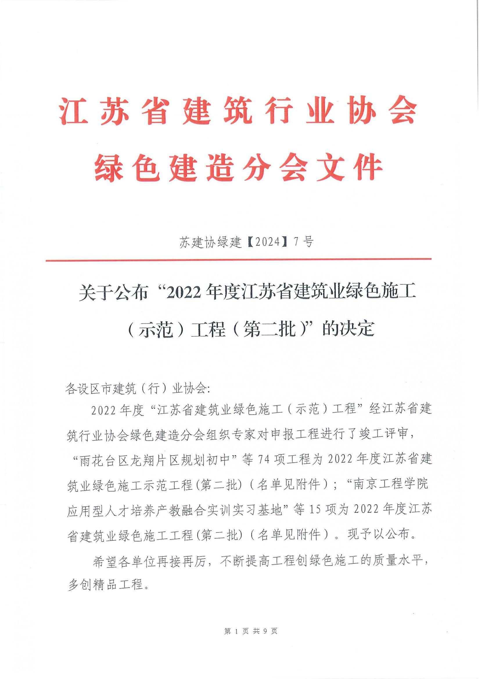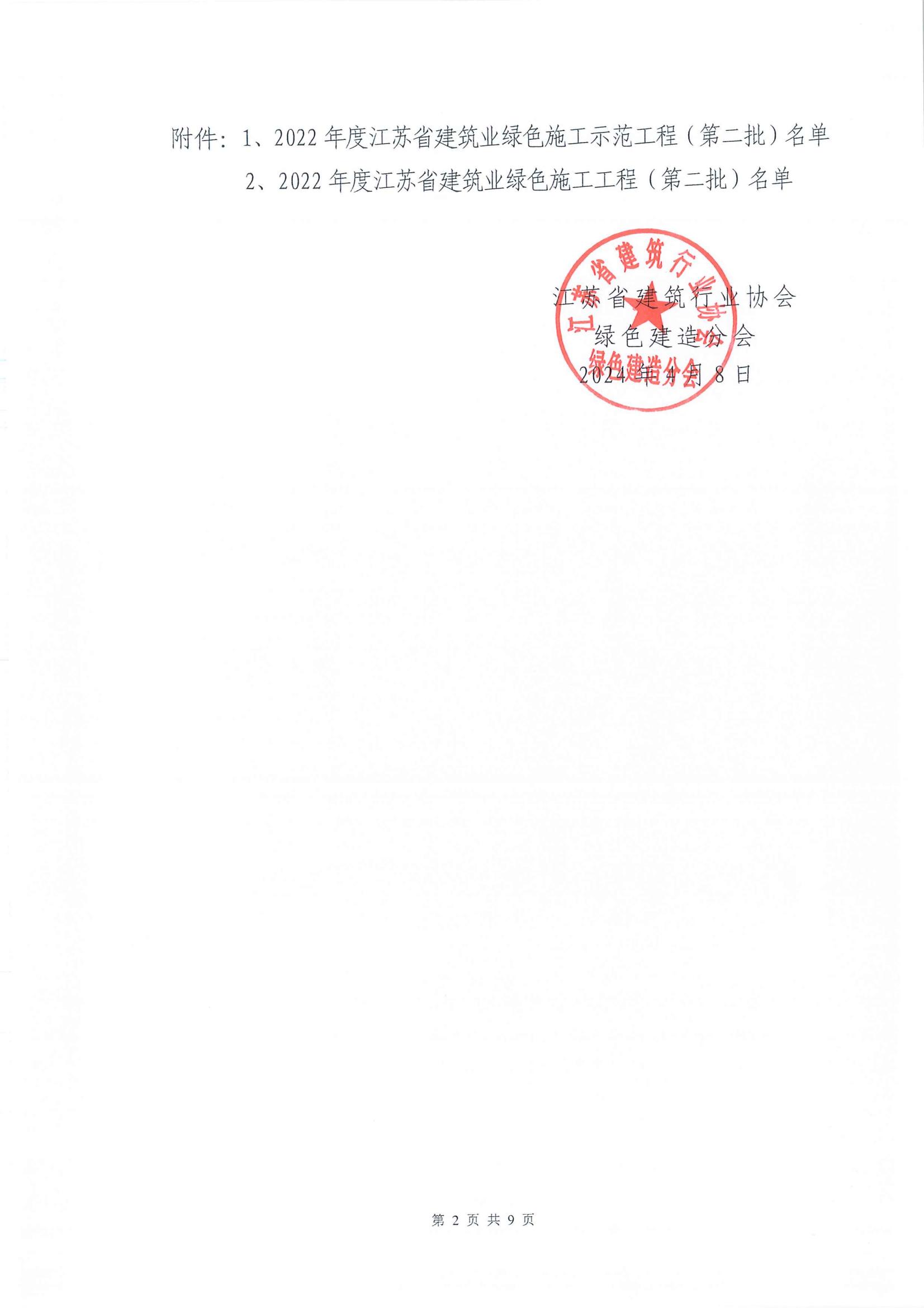 附件:1、2022年度江蘇省建筑業(yè)綠色施工示范工程(第二批)名單