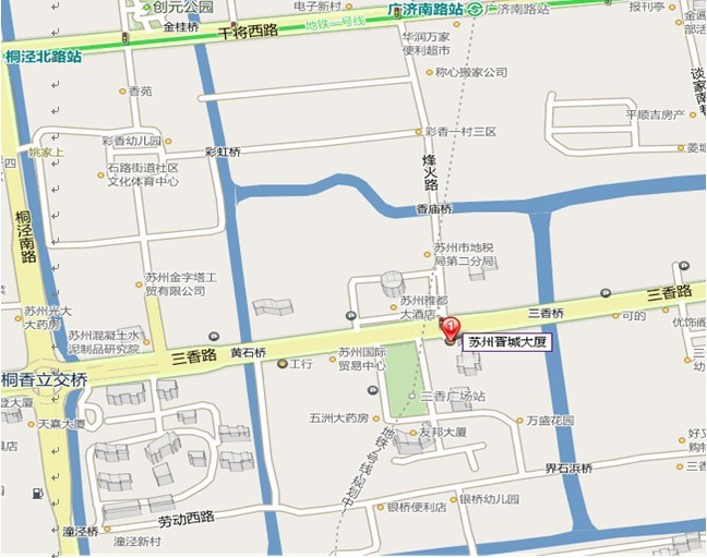 滬寧高速從新區出口下→前往西環路→上西環高架路→下金門路/干將路出口→西環路→在三香路口轉彎(左轉)→前往三香路→過轉盤繼續向東行→蘇州胥城大廈(紅綠燈口右側處)。
